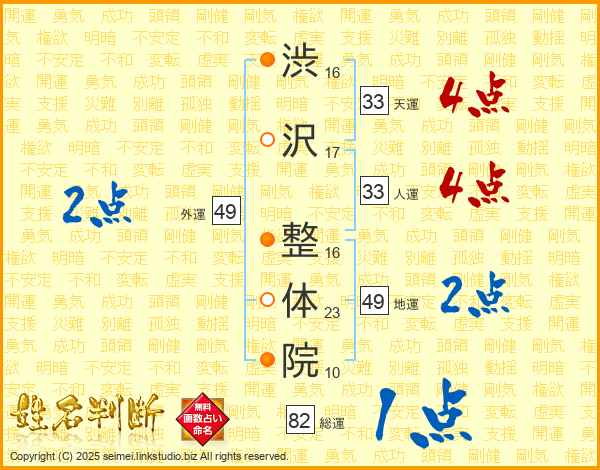 渋沢整体院さんの天運は33画の4点!