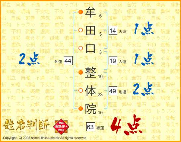 牟(6画)田(5画)口(3画) 整(16画)体(23画)院(10画)