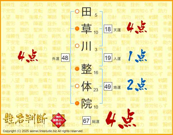 田草川整体院さんの総運は67画の4点!