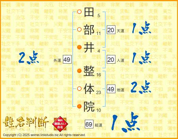 田部井整体院さんの総運は69画の1点!