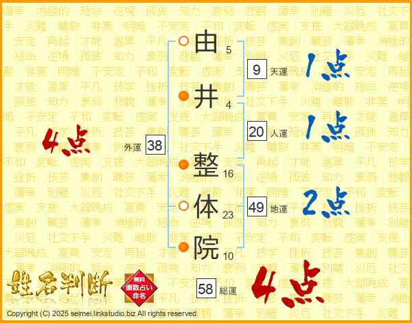 由井整体院さんの総運は58画の4点!