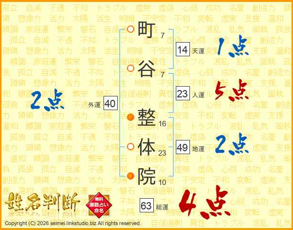 町谷整体院さんの総運は63画の4点!