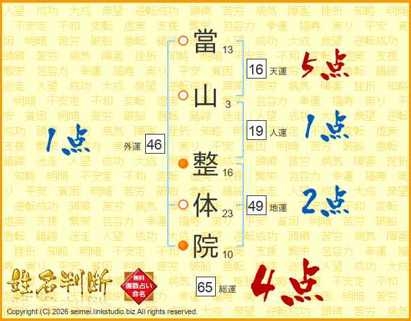 當山整体院さんの総運は65画の4点!