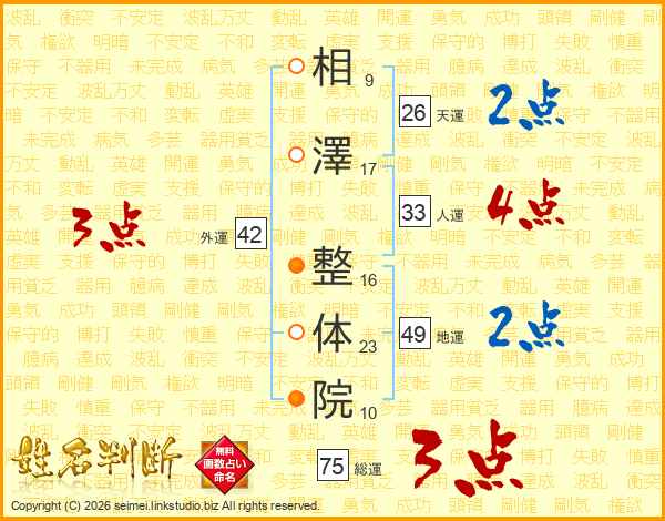 相澤整体院さんの総運は75画の3点!