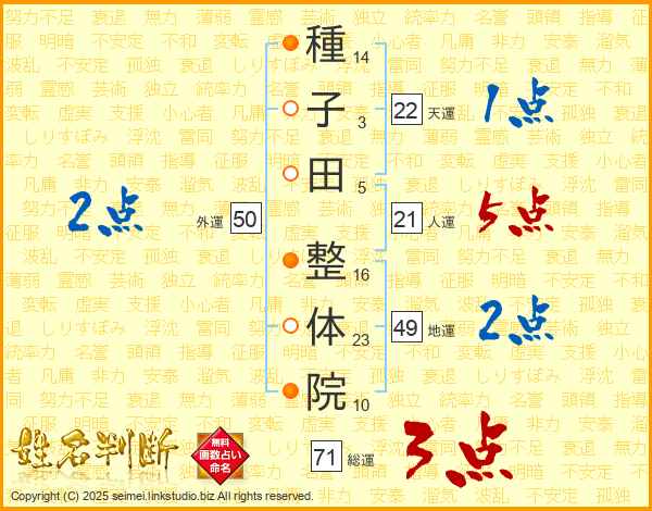 種(14画)子(3画)田(5画) 整(16画)体(23画)院(10画)