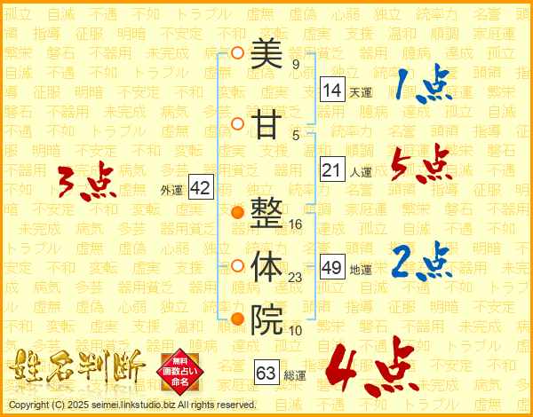 美(9画)甘(5画) 整(16画)体(23画)院(10画)