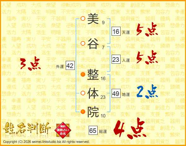 美谷整体院さんの総運は65画の4点!