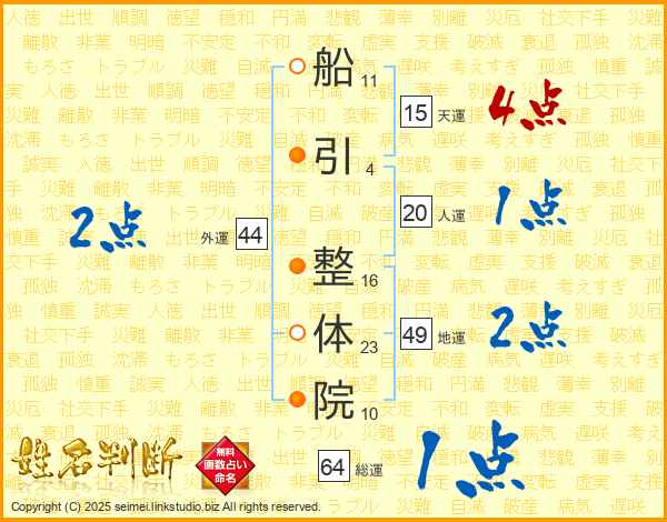 船引整体院さんの総運は64画の1点!