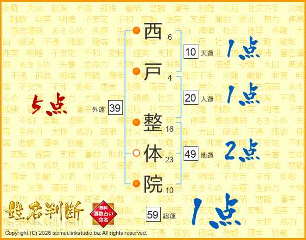 西戸整体院さんの総運は59画の1点!