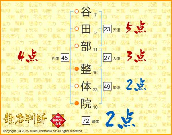谷田部整体院さんの天運は23画の5点!