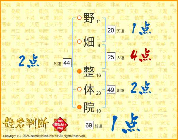 野(11画)畑(9画) 整(16画)体(23画)院(10画)