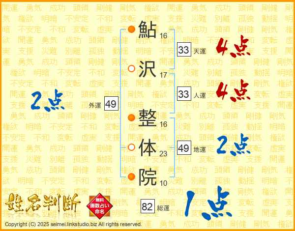 鮎(16画)沢(17画) 整(16画)体(23画)院(10画)