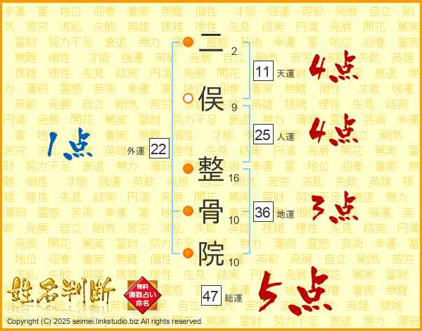 二俣整骨院さんの人運は25画の4点!