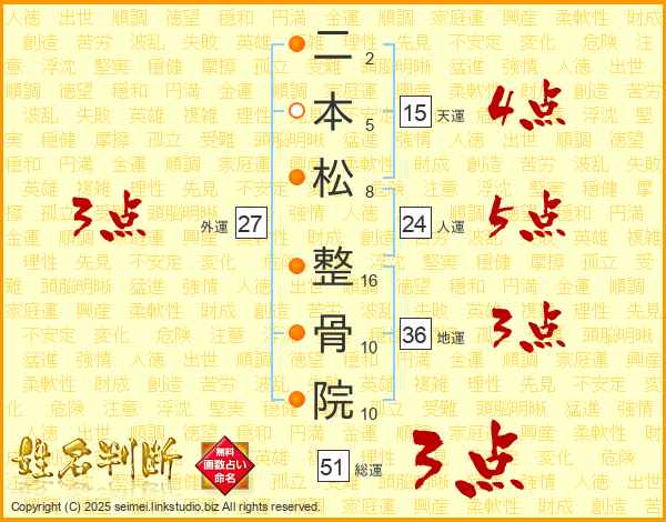 二(2画)本(5画)松(8画) 整(16画)骨(10画)院(10画)