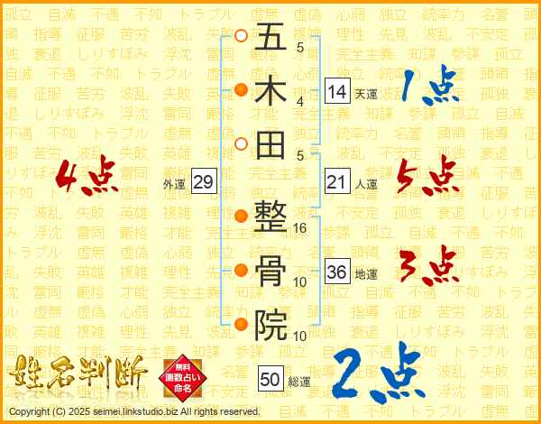 五木田整骨院さんの人運は21画の5点!