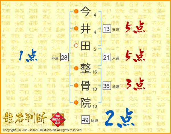 今(4画)井(4画)田(5画) 整(16画)骨(10画)院(10画)