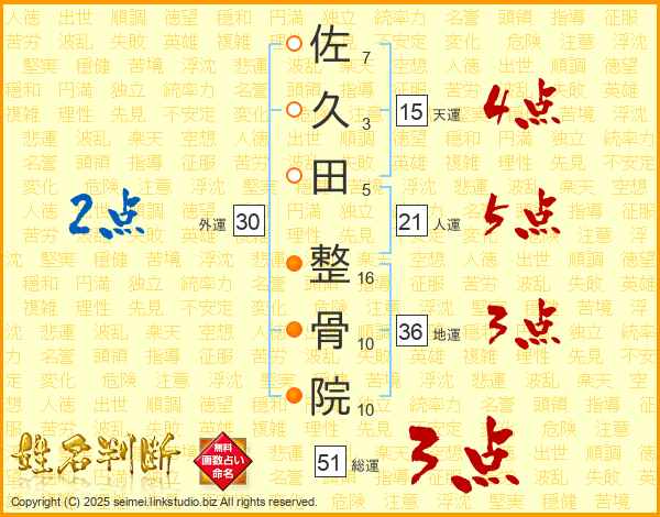 佐久田整骨院さんの天運は15画の4点!