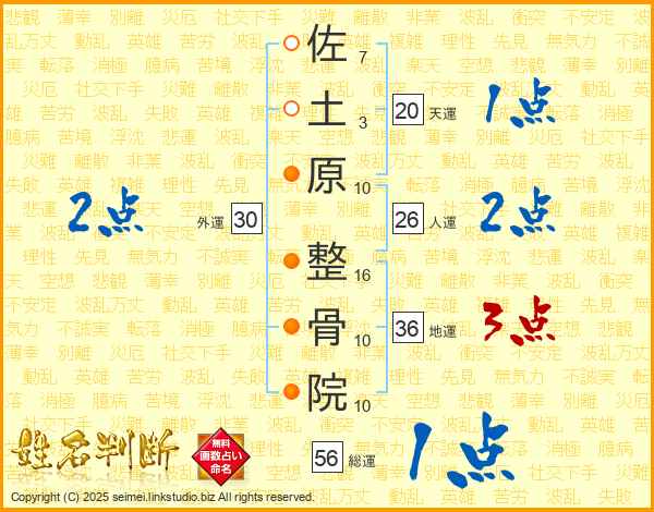 佐(7画)土(3画)原(10画) 整(16画)骨(10画)院(10画)
