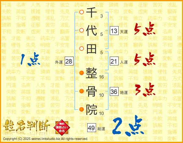 千代田整骨院さんの総運は49画の2点!