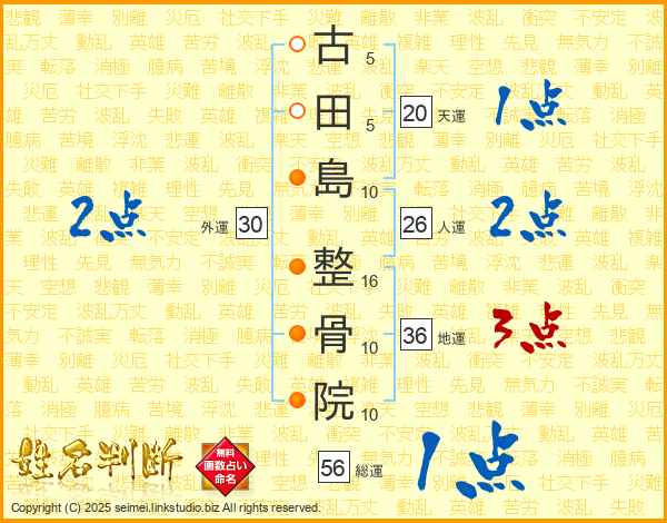 古田島整骨院さんの人運は26画の2点!
