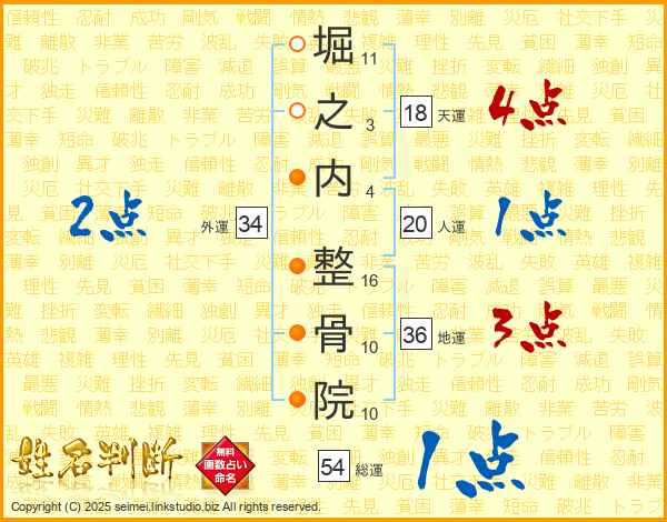 堀(11画)之(3画)内(4画) 整(16画)骨(10画)院(10画)