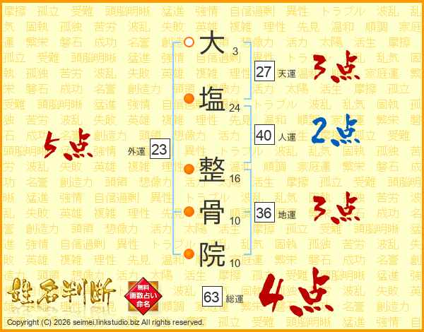 大塩整骨院さんの総運は63画の4点!