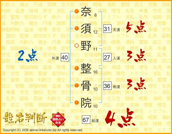 奈須野整骨院さんの天運は31画の5点!