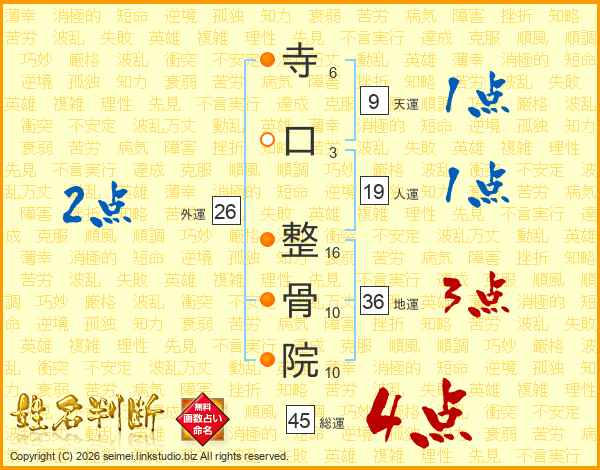 寺口整骨院さんの総運は45画の4点!