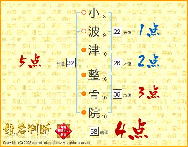 小(3画)波(9画)津(10画) 整(16画)骨(10画)院(10画)