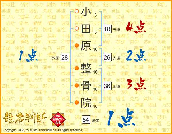 小(3画)田(5画)原(10画) 整(16画)骨(10画)院(10画)