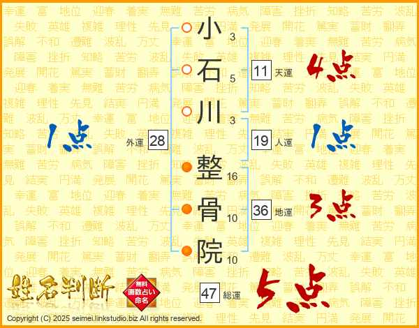 小石川整骨院さんの総運は47画の5点!
