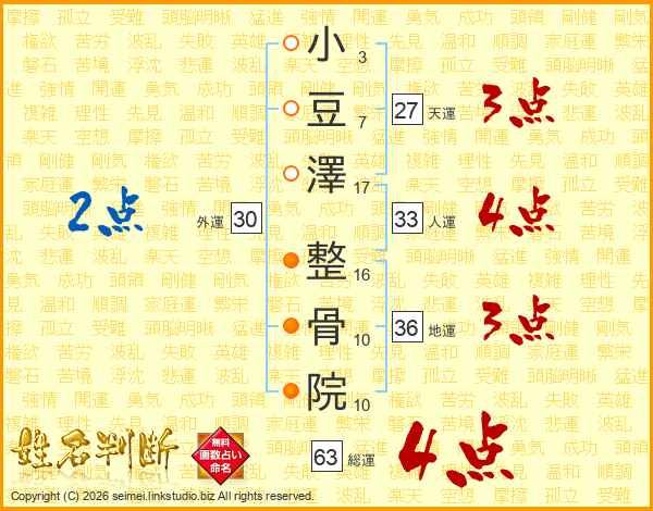 小(3画)豆(7画)澤(17画) 整(16画)骨(10画)院(10画)