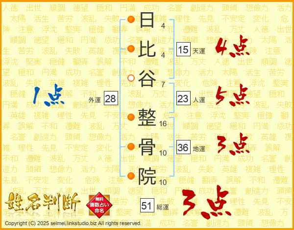 日(4画)比(4画)谷(7画) 整(16画)骨(10画)院(10画)