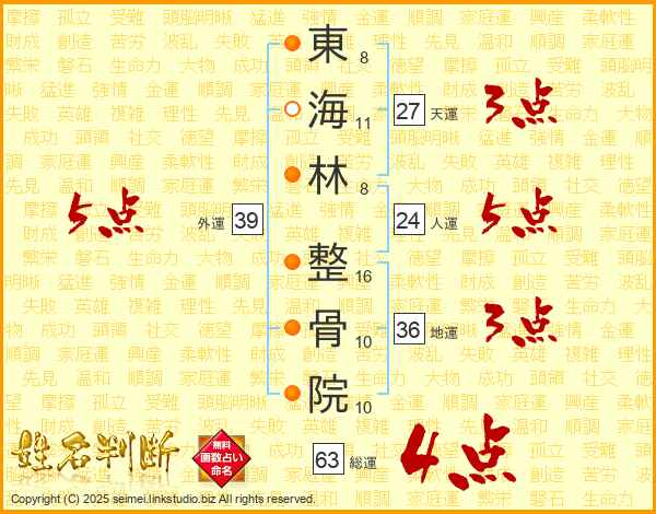東(8画)海(11画)林(8画) 整(16画)骨(10画)院(10画)