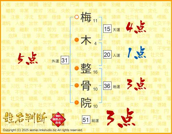 梅木整骨院さんの総運は51画の3点!