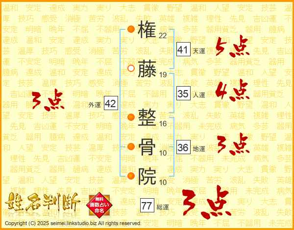 権藤整骨院さんの総運は77画の3点!