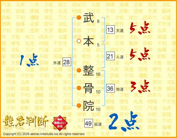 武(8画)本(5画) 整(16画)骨(10画)院(10画)
