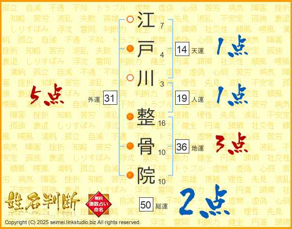 江戸川整骨院さんの総運は50画の2点!