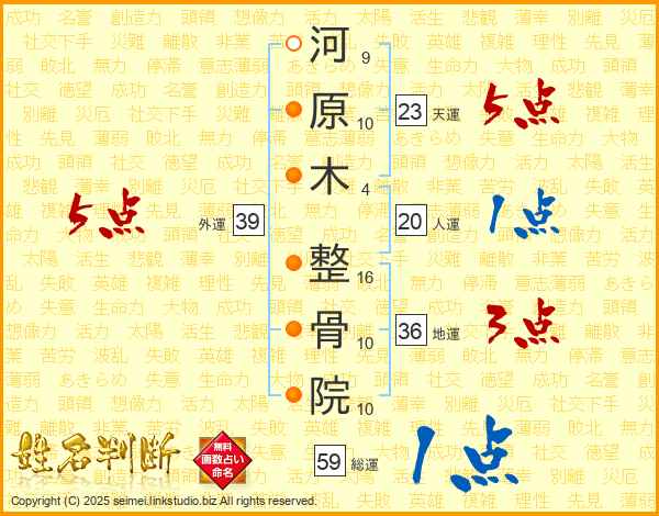 河(9画)原(10画)木(4画) 整(16画)骨(10画)院(10画)