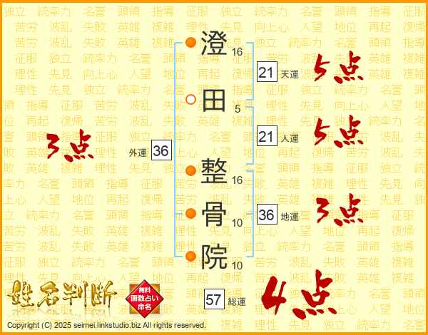 澄(16画)田(5画) 整(16画)骨(10画)院(10画)