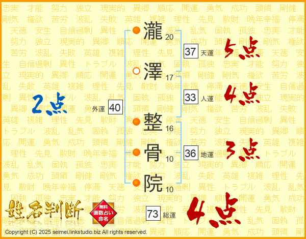 瀧(20画)澤(17画) 整(16画)骨(10画)院(10画)