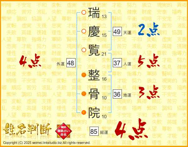 瑞(13画)慶(15画)覧(21画) 整(16画)骨(10画)院(10画)