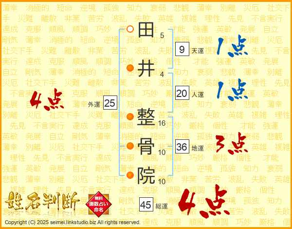 田(5画)井(4画) 整(16画)骨(10画)院(10画)