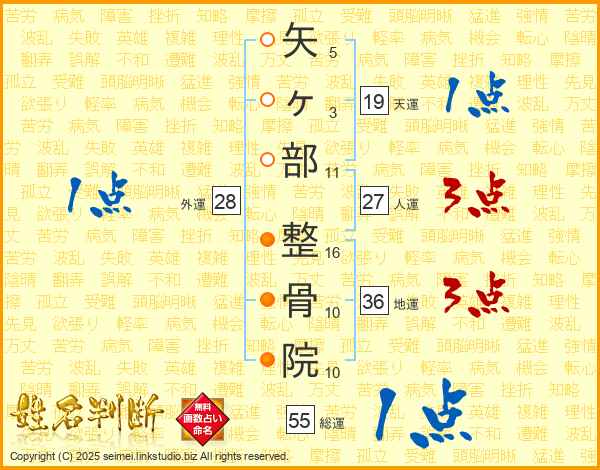 矢ヶ部整骨院さんの天運は19画の1点!