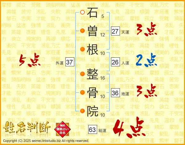 石曽根整骨院さんの総運は63画の4点!