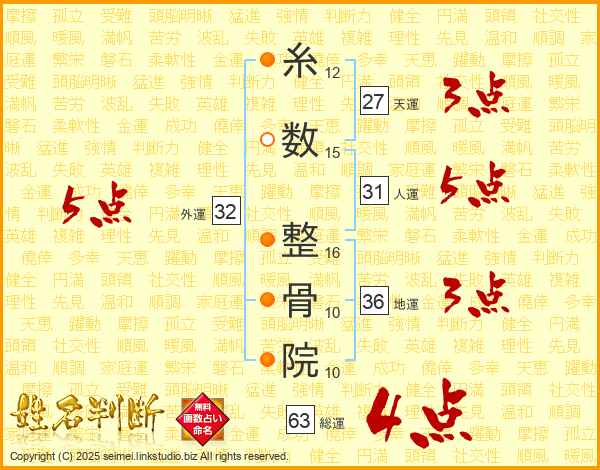 糸数整骨院さんの総運は63画の4点!