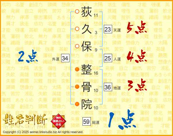 荻久保整骨院さんの人運は25画の4点!