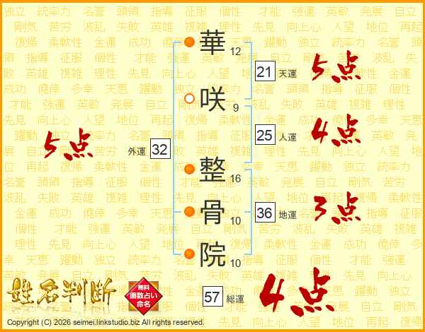 華咲整骨院さんの天運は21画の5点!