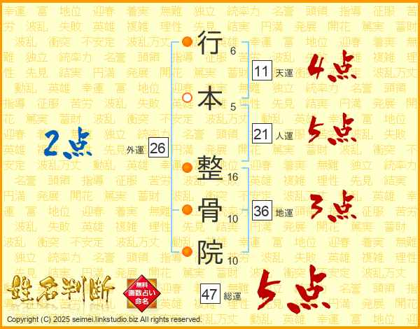 行本整骨院さんの総運は47画の5点!