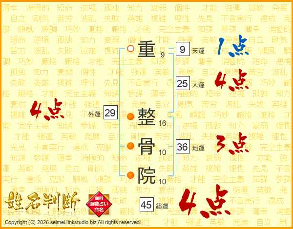 重整骨院さんの総運は45画の4点!